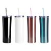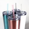 Termo doble pared fabricado en acero inoxidable con tapa de y popote, capacidad 16 oz.